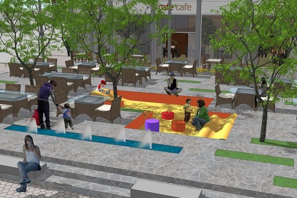 מתחם ילדים שופע, בעל הצללה גדולה עם שיקולי ראות נוחים לכלל ההורים בעת נוכחתם בחנויות .